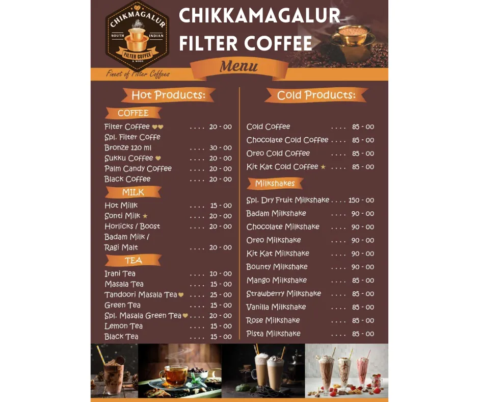 It is with great pride that we at Chikkmangalur filter coffee are able to not only master the art of preparing traditional South-Indian drip coffee, but we have also redefined the ultimate traditional filter coffee of the 80s, a cultural icon that has become synonymous with South Indians for the last few decades. With the help of our franchisee partners, we will soon be able to bring the coffee culture to your neighborhood by setting up quick-service cafes within your neighborhood.